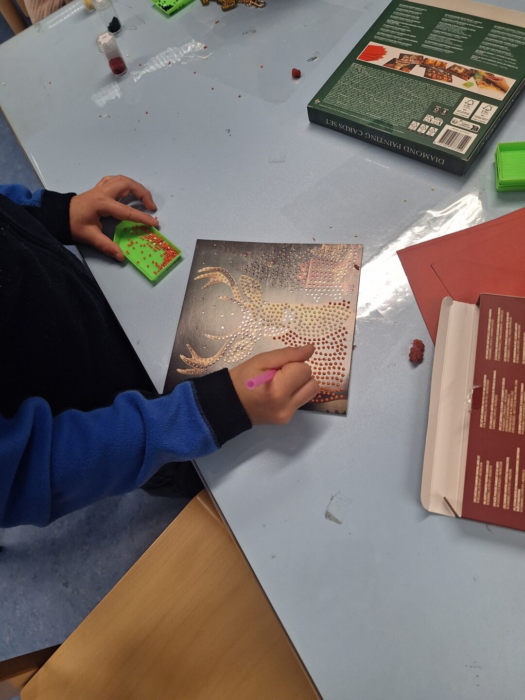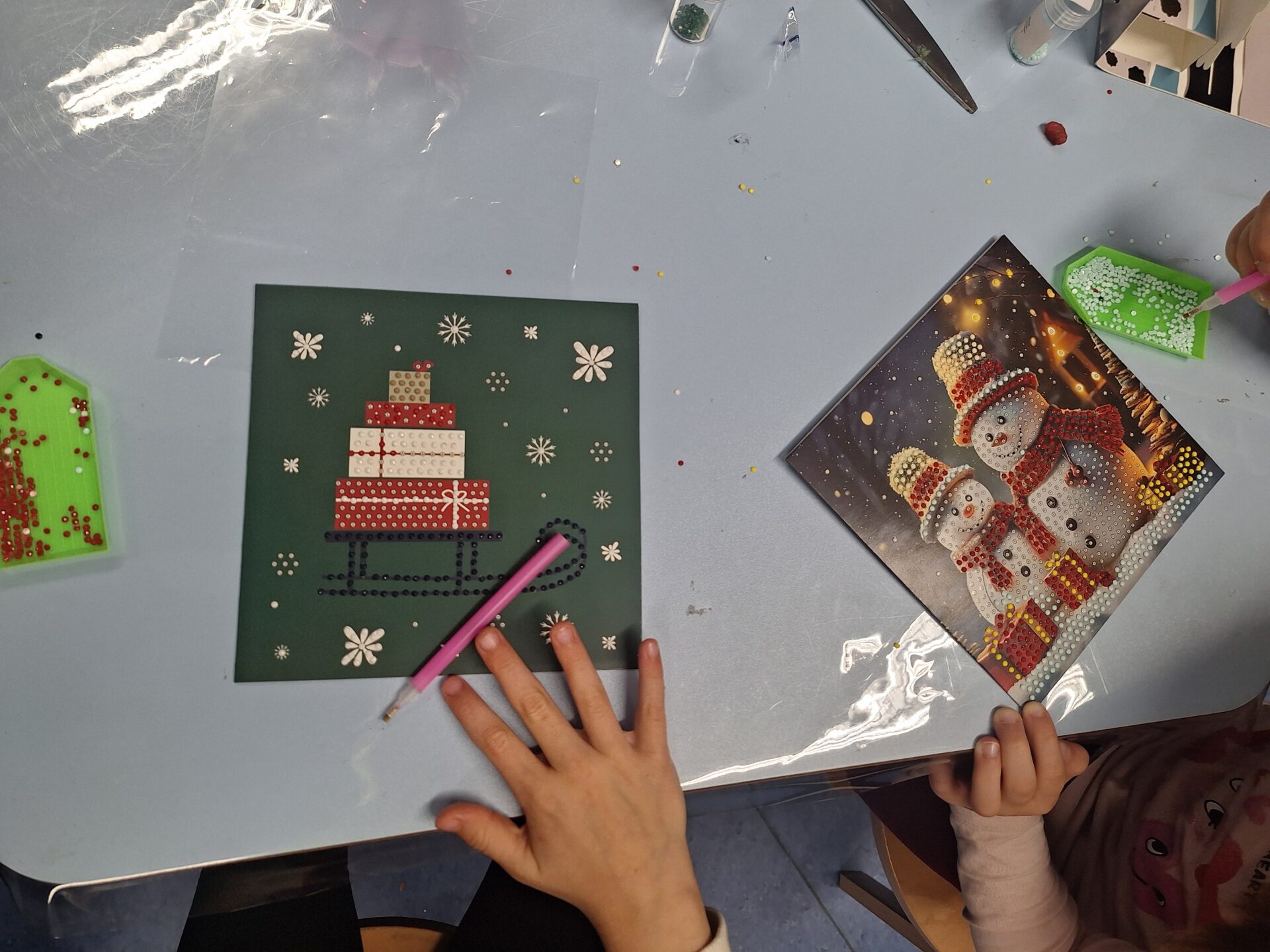 Beim Diamond Panting haben die Kinder sowohl Schlüsselanhänger als auch Weihnachtskarten mit unterschiedlichen Motiven gemacht ⛄️