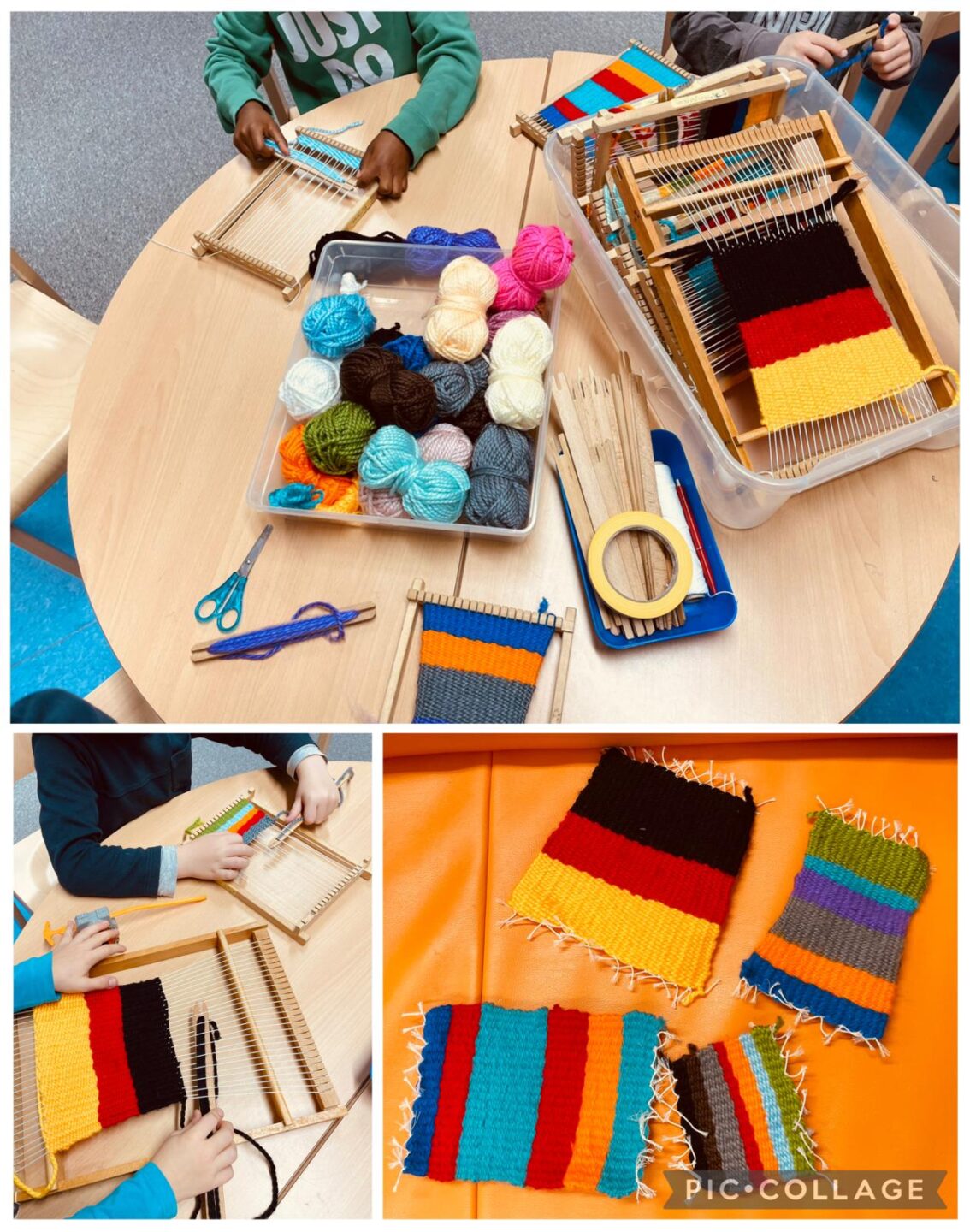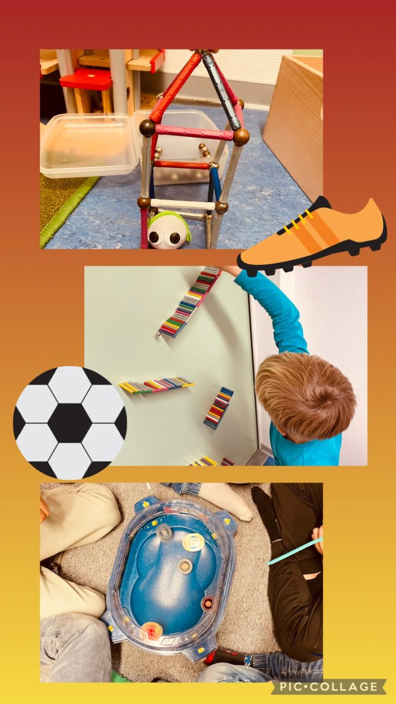 Neue Webrahmen gibt es seit Montag. Die Kinder sind fleißig am Weben, bis ihr Deckchen fertig ist. Wichtig ist dabei Ausdauer, Auge-Hand-Koordination und auch etwas Geduld…andere Kinder haben ihren Spaß mit den Kreiseln, und wider andere lassen sich Neues mit den Magneten einfallen 😍